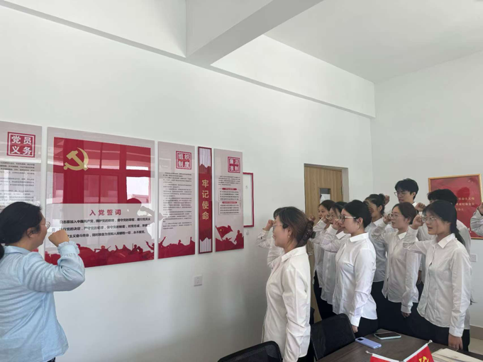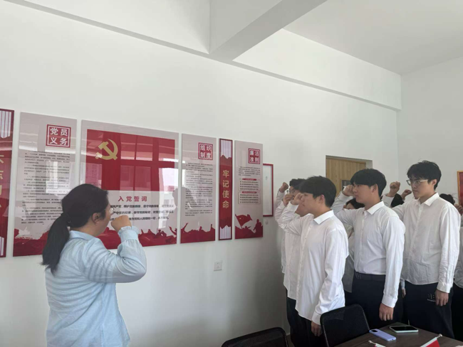 活动伊始,主讲人首先介绍本次入党宣誓活动的筹备情况与意义,并郑重宣读参与宣誓的党员名单,每一个名字都承载着沉甸甸的责任与光荣。随后,在学生党支部书记邵园园的带领下,全体党员高举右拳、面向党旗庄严宣誓,铿锵有力的誓言不仅是对共产主义事业的坚定承诺,也是践行初心使命与矢志跟党走的坚定宣告。最后,主讲人特别强调,学生党员要紧密结合学习、工作和生活实际发挥党员先锋模范作用,奋力成长为堪当民族复兴大任的时代新人,以实际行动夯实学院党建工作根基,推动党建引领育人工作走深走实,为培养担当民族复兴大任的时代新人注入红色动能。