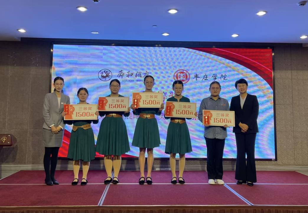 (“山东舜和酒店集团奖学金”三等奖 获得者:马晓瑞、樊紫怡、吕晨曦颜、张夏楠、潘雪妍)