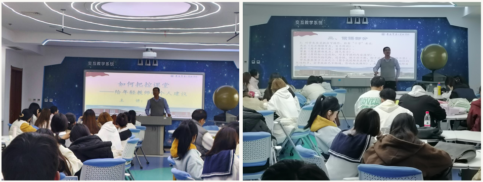 会上,荆锐老师结合自身丰富的一线教学经历,围绕备课、课堂常规、课下辅导、教学技巧及班主任管理等八个部分展开分享。在备课环节,他提出“备教材、备学生、备课堂”的核心要求,通过“这节课要带学生去哪里”等三个深度追问,引导同学们思考教学设计的本质。课堂常规与技巧部分,从学生坐姿“十字”要求到“讲台四不站”的细节,从导入环节的精炼性到师生目光交流的重要性,荆老师事无巨细地讲解了课堂实施的关键要点。课下辅导部分,他针对不同层次学生提出“补底、提中、拔高”的分层策略,其中基础薄弱生辅导的“降低起点、放慢节奏、小步反馈”方法,以及“午练”活动的成效,让同学们深受启发。此外,他还分享了班主任管理中以管理树威望、以氛围促发展的理念。