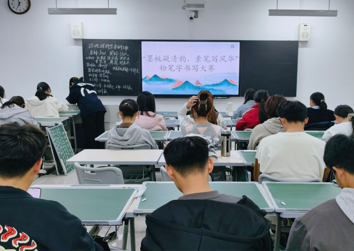 为强化师范类学生教学基本功,传承中华汉字文化,展现我院学子的专业素养,10月21日,旅游与资源环境学院于崇德楼4410教室举办“墨板凝清韵,素笔写风华”粉笔字书写大赛,2023级、2024级、2025级地理科学专业全体师范生参与。
