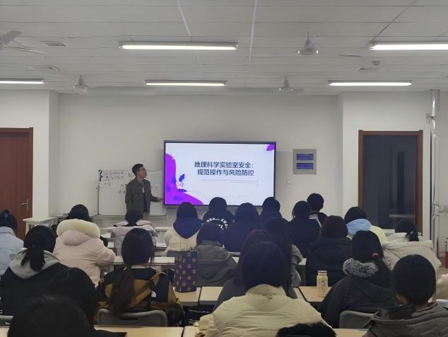 活动由地理科学教研室主任董志鹏博士和创新创业教研室主任阴法庭博士主讲。董志鹏博士系统阐述了专业的办学历史、师资队伍、人才培养特色以及发展前景,详细介绍了专业课程体系、实践教学环节(包括野外实习、教育见习与实习等)以及未来的升学与就业方向。最后对地理科学实验室安全工作进行了培训教育。阴法庭博士分享了创新创业学科竞赛方面的经验知识,分别从政策解读、竞赛性质分类、项目选择、团队组建、参赛注意事项等方面展开,并通过具体案例分享,详细阐述了科研主导型和公益型参赛项目的特色,极大得提升了学生参加竞赛的热情和兴趣。