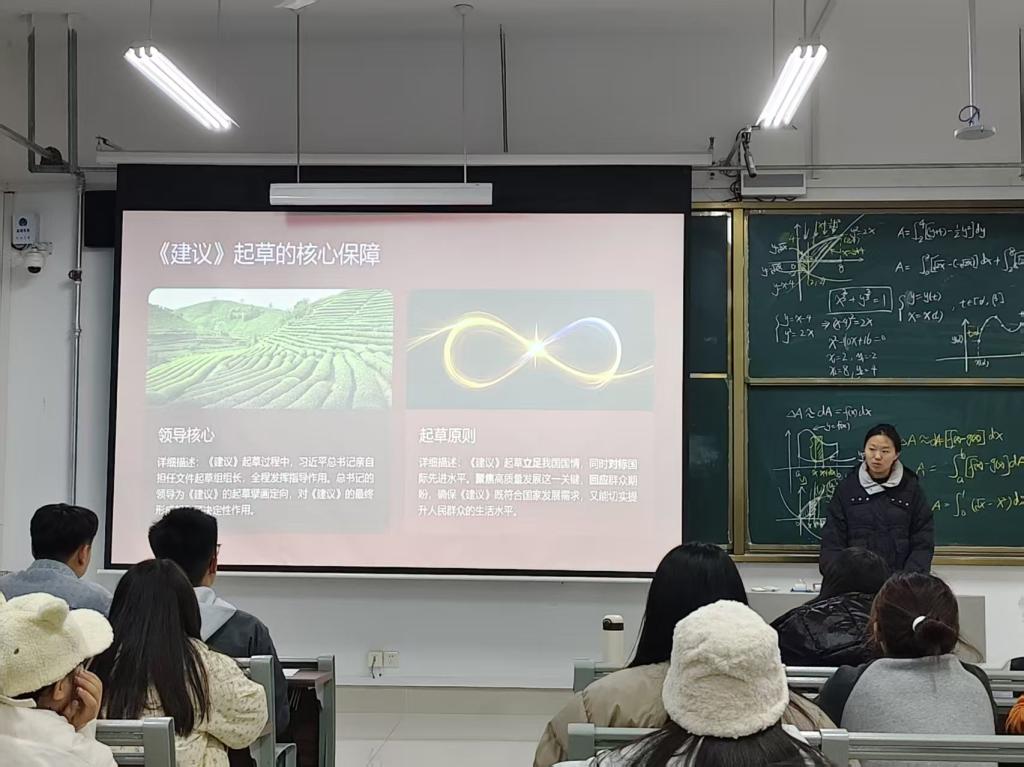 为深入学习贯彻党的二十届四中全会精神,引导青年学子锚定“十五五”发展方向,厚植投身中国式现代化建设的信念担当,11月26日,旅游与资源环境学院在崇德楼504开展“擘画“十五五”蓝图 推进中国式现代化—深入学习贯彻党的二十届四中全会精神”主题青马工程培训活动。此次活动由庞兰茜主讲,我院学子积极参与学习。