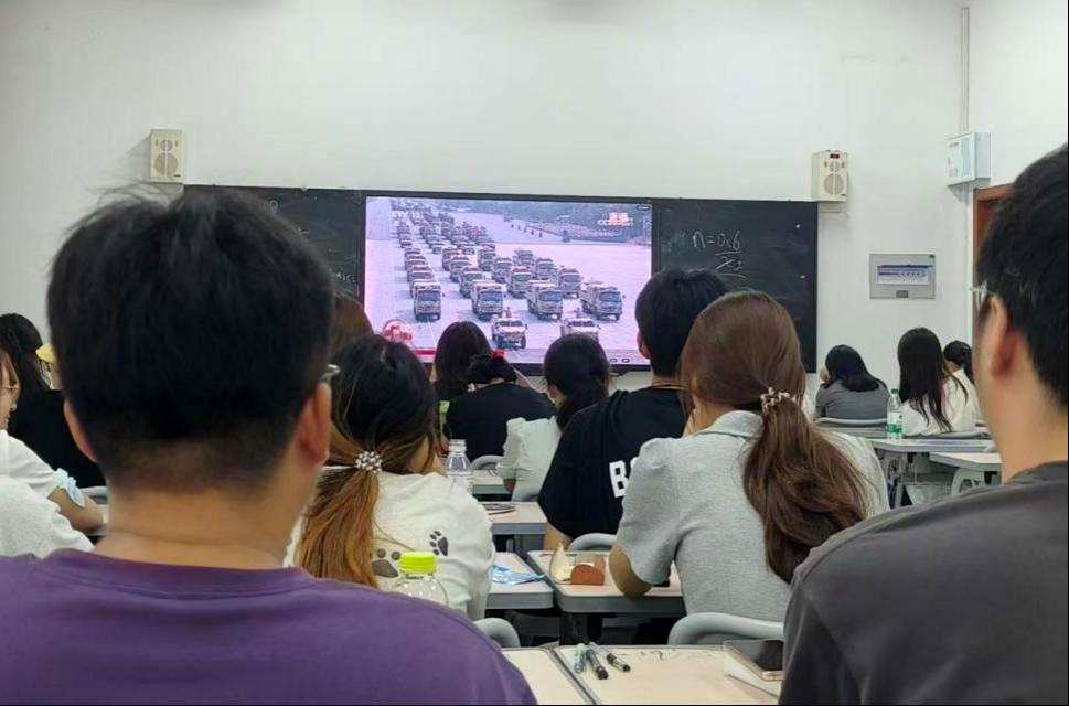 9月3日上午,纪念中国人民抗日战争暨世界反法西斯战争胜利80周年阅兵仪式盛大举行。旅游与资源环境学院组织全体学生在各个教室统一观看直播,上好这堂沉浸式爱国主义思政课。