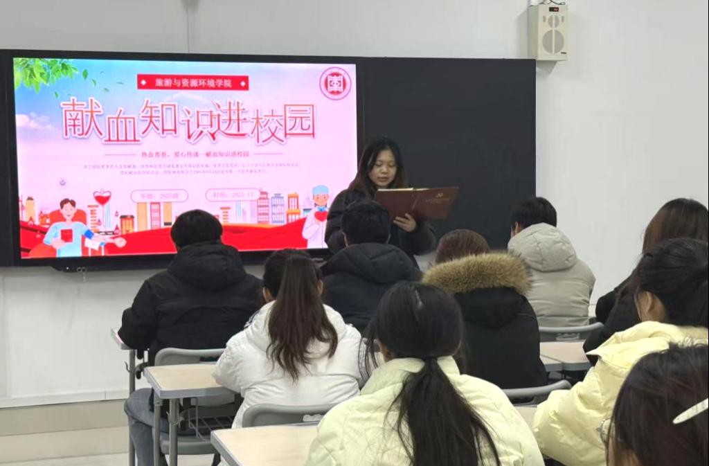 为弘扬无私奉献的人道主义,切实增强青年学子的社会责任感与使命担当,12月8日,旅游与资源环境学院在崇德楼4416等教室开展无偿献血主题宣讲活动。