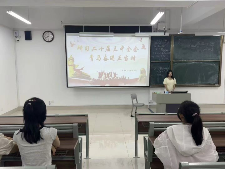 5月23日《研习党的二十届三中全会精神 青马奋进正当时》主题课程由我院团学干部孙悦主讲。主讲人围绕党的二十届三中全会的重大历史意义、总体要求与核心精神展开系统讲解,同时重点焦“进一步全面深化改革,推进中国式现代化”的核心要义,带领学员深入了解全会对新时代党和国家事业发展作出的战改革略部署,进一步增强“四个意识”、坚定“四个自信”、做到“两个维护”,鼓励大家将研习所得转化为成长动力,以改革思维破解学业难题、以实干姿态融入中国式现代化建设。