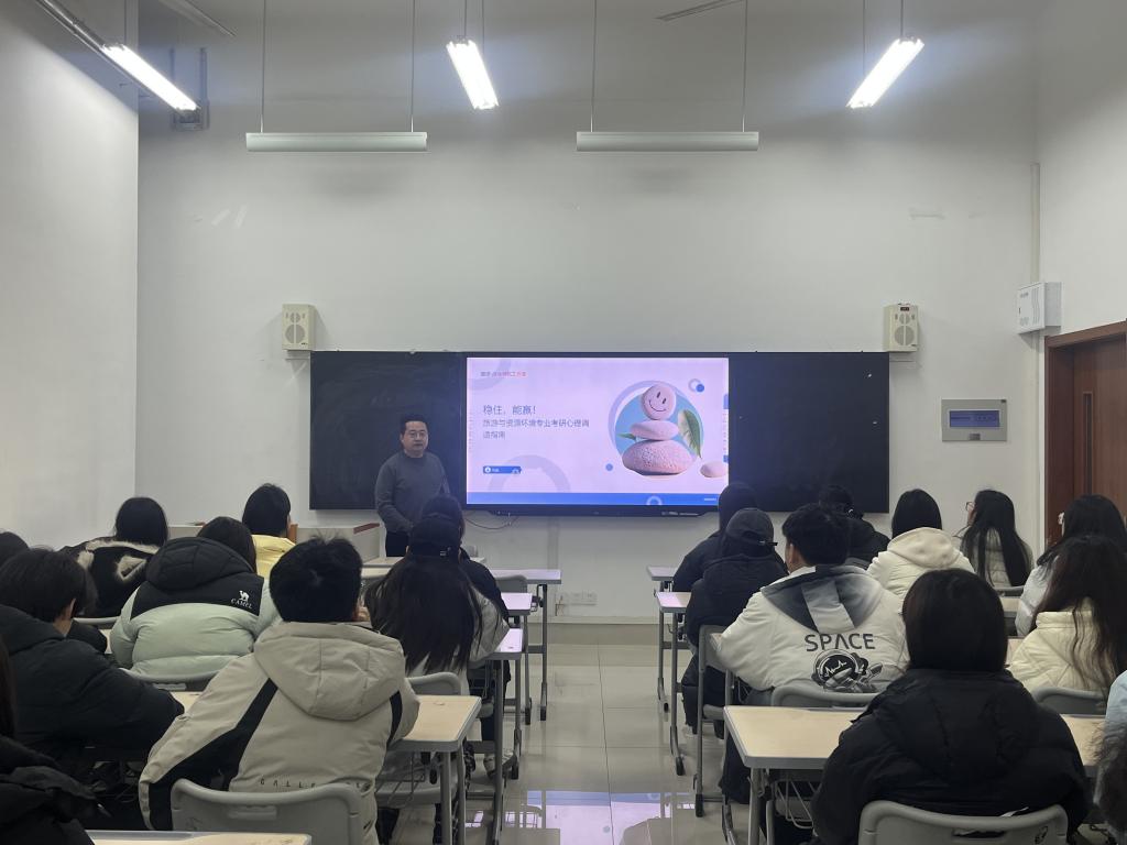 为精准掌握考研学子心理状态,切实做好考研备考阶段心理健康服务工作,11月21日,旅游与资源环境举办考研心理座谈会,本次活动由周赢老师主讲,全体考研学生参加。