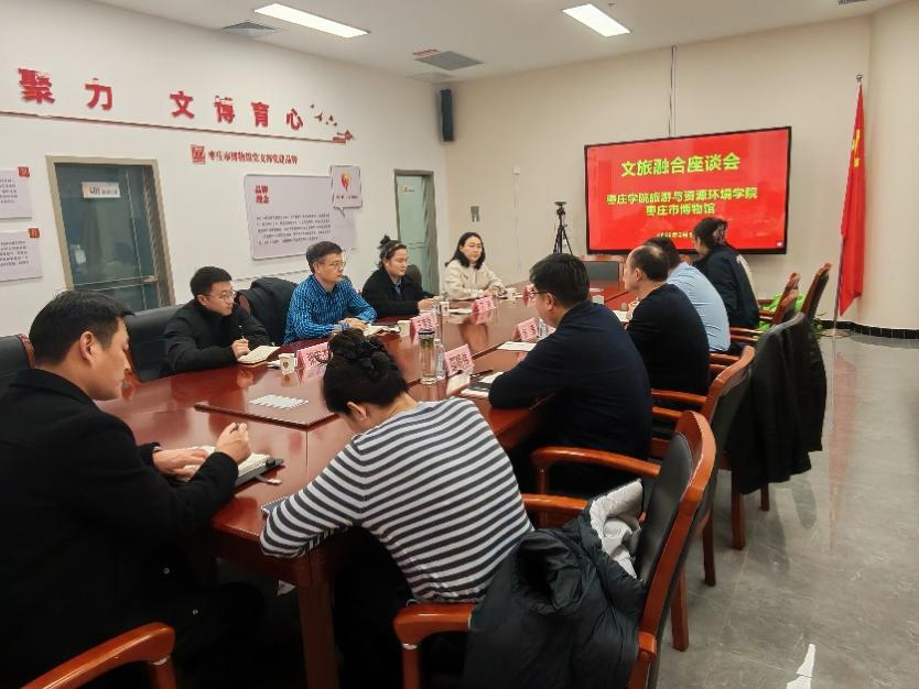 2月5日下午,旅游与资源环境学院院长王满堂一行四人赴枣庄市博物馆,就“文旅融合”开展座谈会。枣庄市文化和旅游事业发展中心副主任张涛、枣庄市博物馆馆长邵明伟等参加座谈。