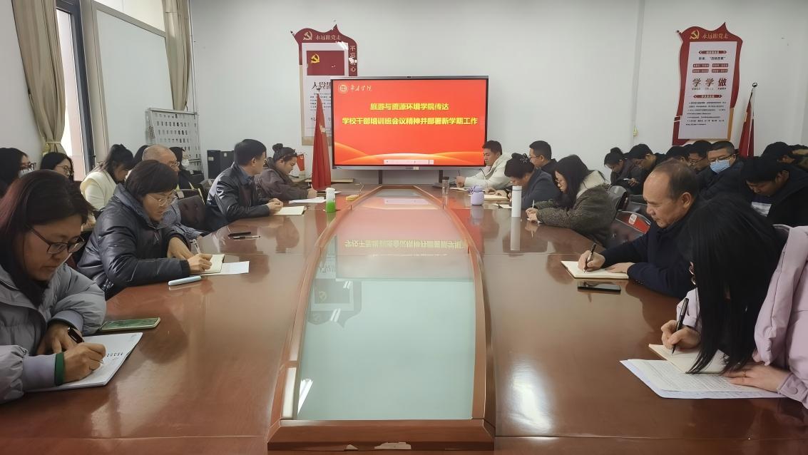 3月5日下午,旅游与资源环境学院在豁然楼A415会议室组织召开“传达学校干部培训班会议精神”与部署新学期工作会议,学院全体教职工参加会议,会议由院长王满堂主持。