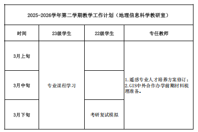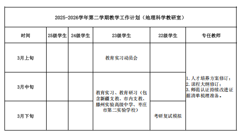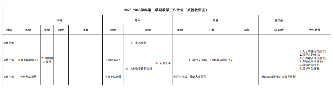 旅游与资源环境学院2025-2026学年第二学期三月份教学工作计划