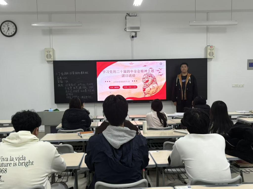 为引导广大青年学习贯彻习近平新时代中国特色社会主义思想,深刻领会党的二十届四中全会精神的核心要义与时代价值,11月5日,旅游与资源环境学院在崇德楼各教室开展“学习党的二十届四中全会精神”主题团日活动。