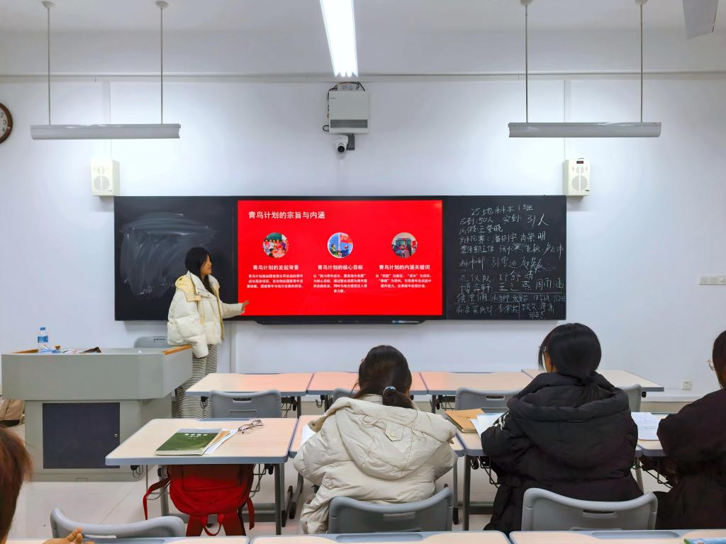 活动伊始,主讲人向同学们重点介绍“青鸟计划”提供的政务实践、社区服务等多领域实践平台,通过真实案例分享和宣传片展播,让学生了解实践内容与参与方式,明白青鸟计划对个人发展的重要意义。同时,主讲人结合自身实践经验,围绕实践岗位的选择为同学们答疑解惑,极大地激发了学生的参与热情。最后,主讲人强调,青鸟计划在服务学生成长成才、强化思想引领等方面发挥重要作用,同学们要积极参与“青鸟计划”,投身社会实践,实现个人价值。